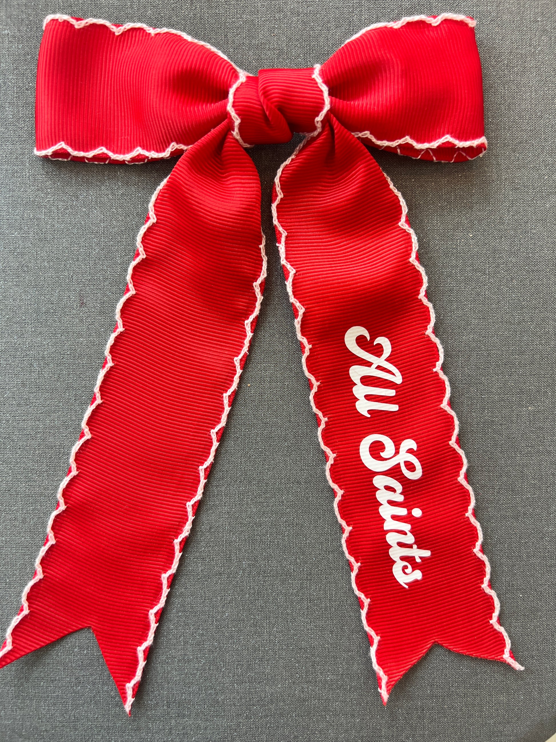 All Saints Clip Hair Bow Red with white trim